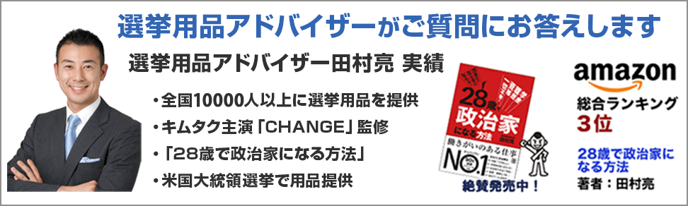 選挙用品について 「短期決戦は、選挙用品がカギ!」