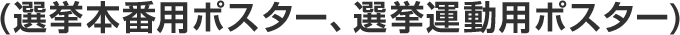 選挙ポスターは選挙本番用ポスター、選挙運動用ポスター、掲示板ポスター、法定ポスター、ユポポスター、屋外用ポスター、ユポ紙ポスター、ユポタック紙ポスターなどと呼称されます。